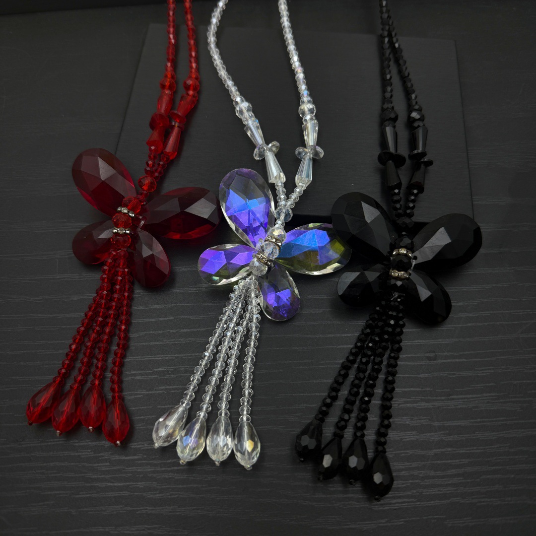 Live Cross-Border Crystal Butterfly Sweater Chain Creative Butterfly Necklace with Rhinestones for Women Versatile Elegant Long Tassel Pendant
