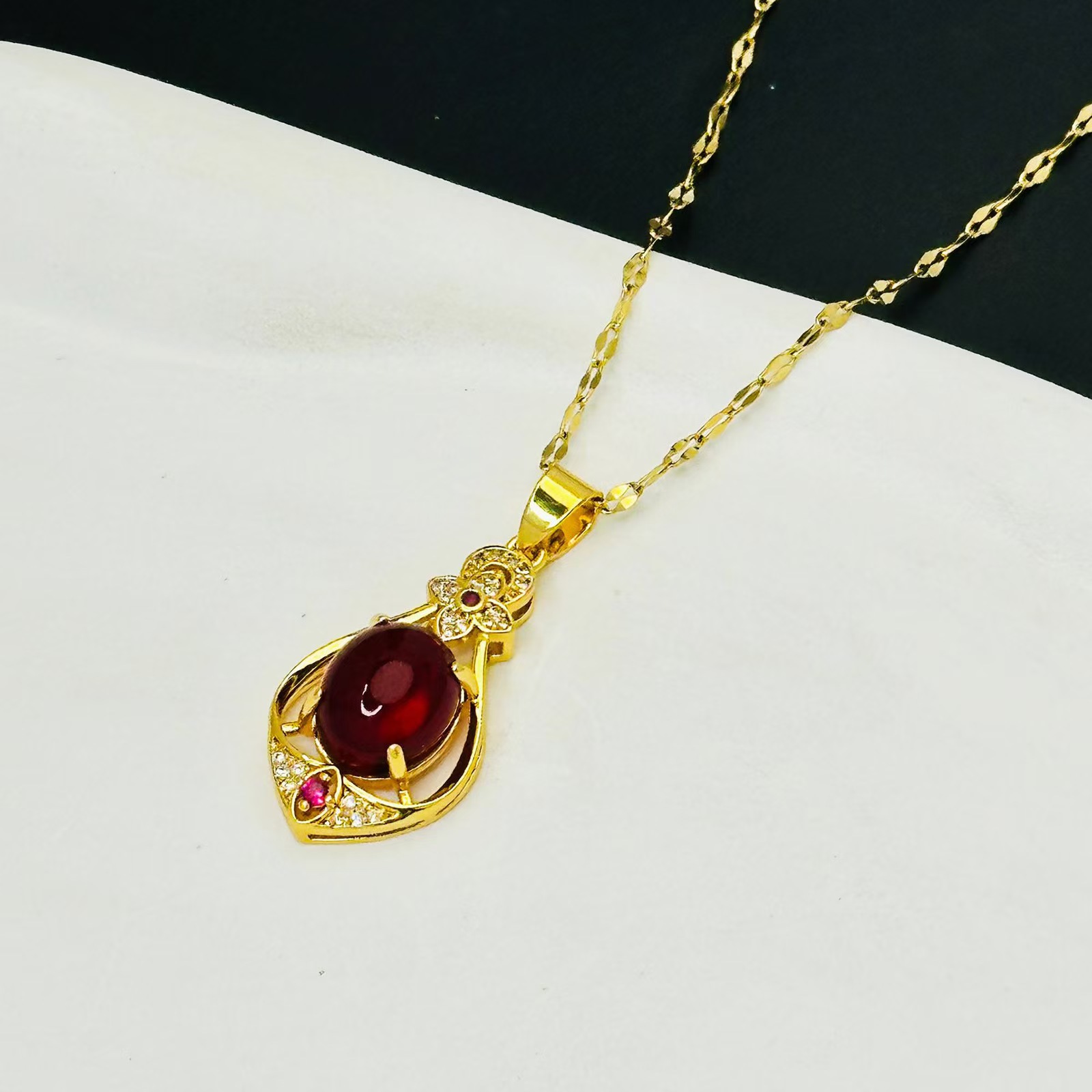 Tiktok Trending Titanium Steel Necklace for Women, Ins-Style Light Luxury Gemstone Four-Leaf Clover Pendant, High-Quality Jewelry That Does Not Fade