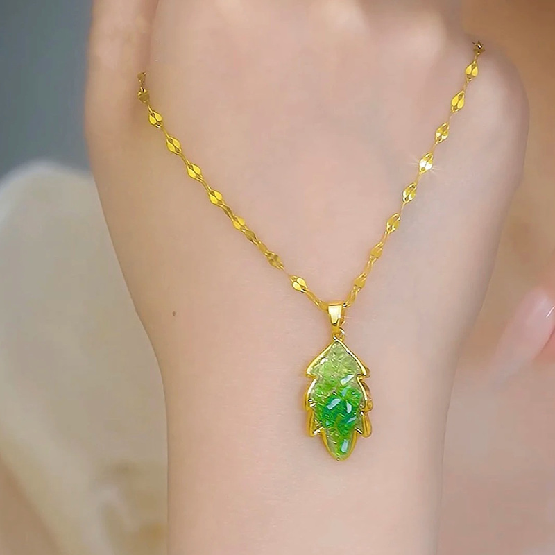 Cross-border 2023 new titanium steel bracelet women Europe and the United States light luxury niche retro emerald necklace cold wind wholesale