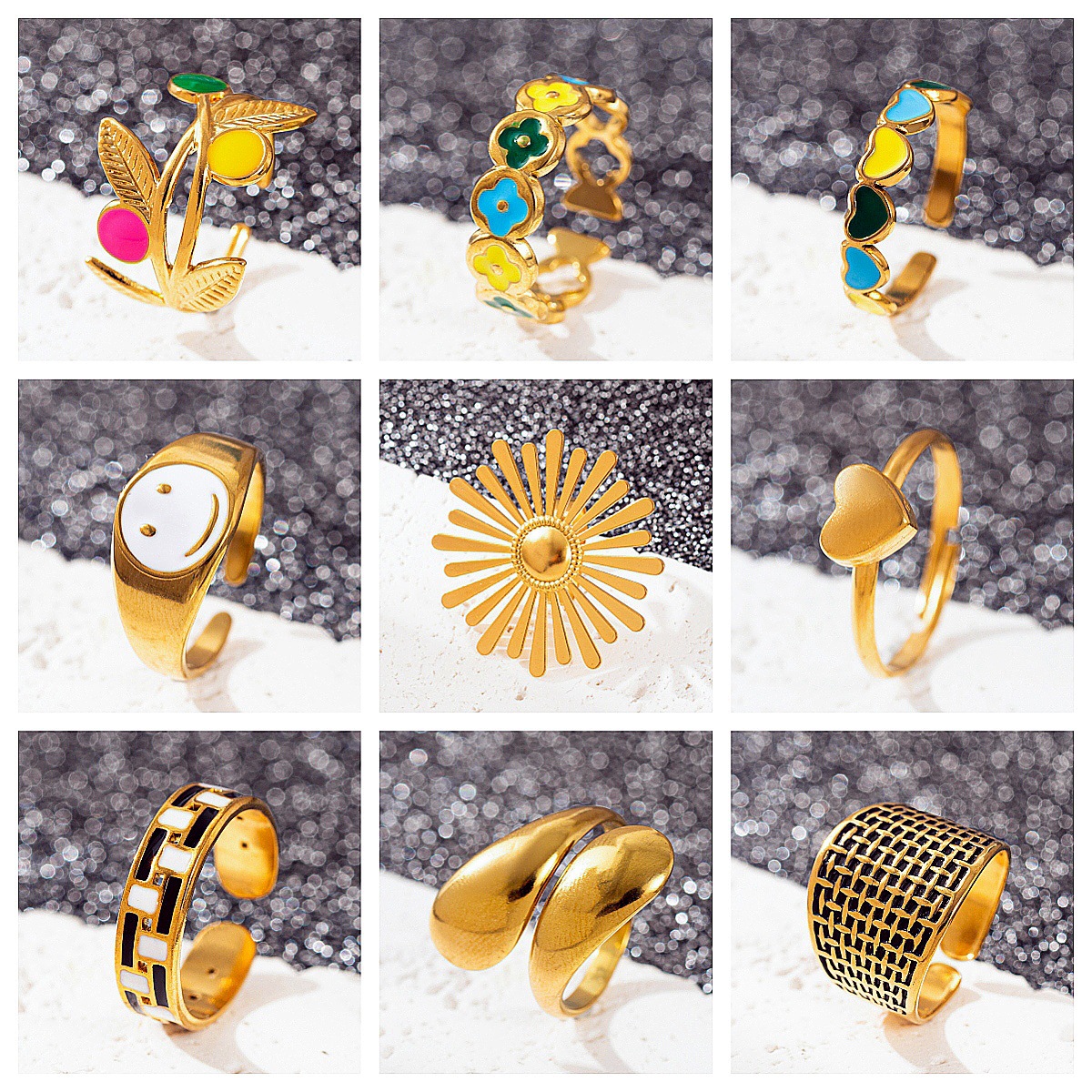 Stainless steel ring 18K gold love does not fade open ring new titanium steel waterproof fashion retro style