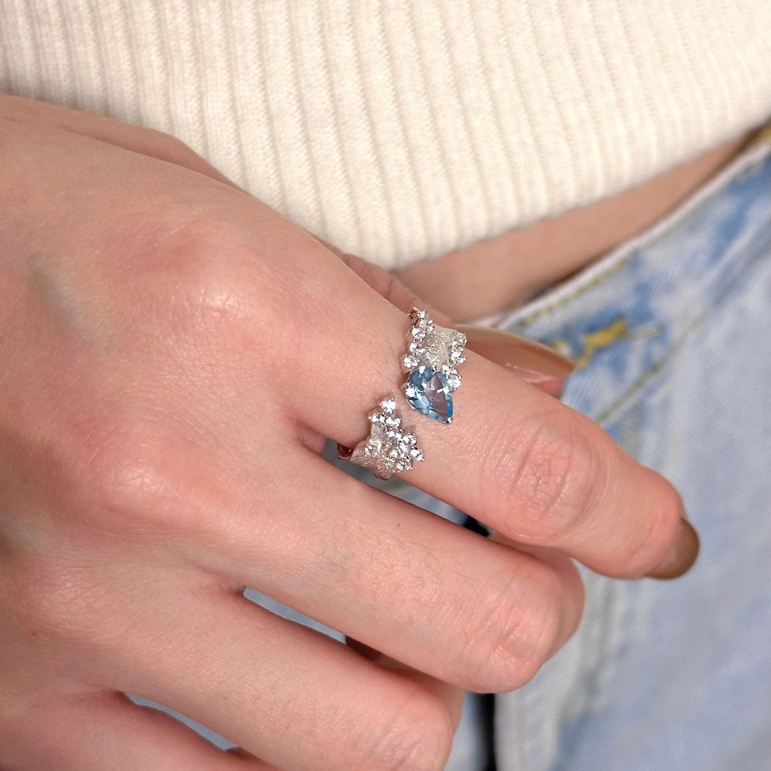 Water Drop Adjustable Ring Advanced Feeling Temperament Exquisite Light Luxury Finger Ring Open Ring Middle Court Style Wire-drawing