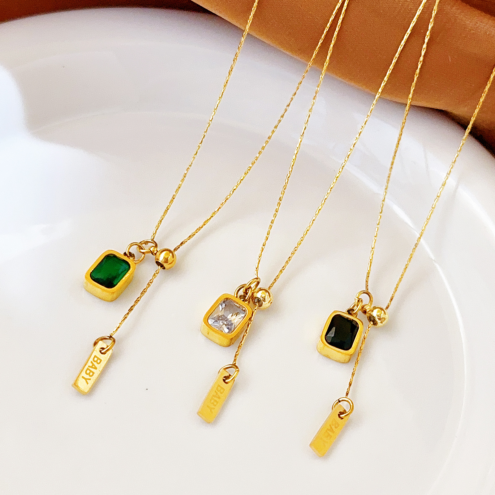 Pull-out adjustable square colorful zircon crystal 2024 new titanium steel necklace women's high-end fashion clavicle chain