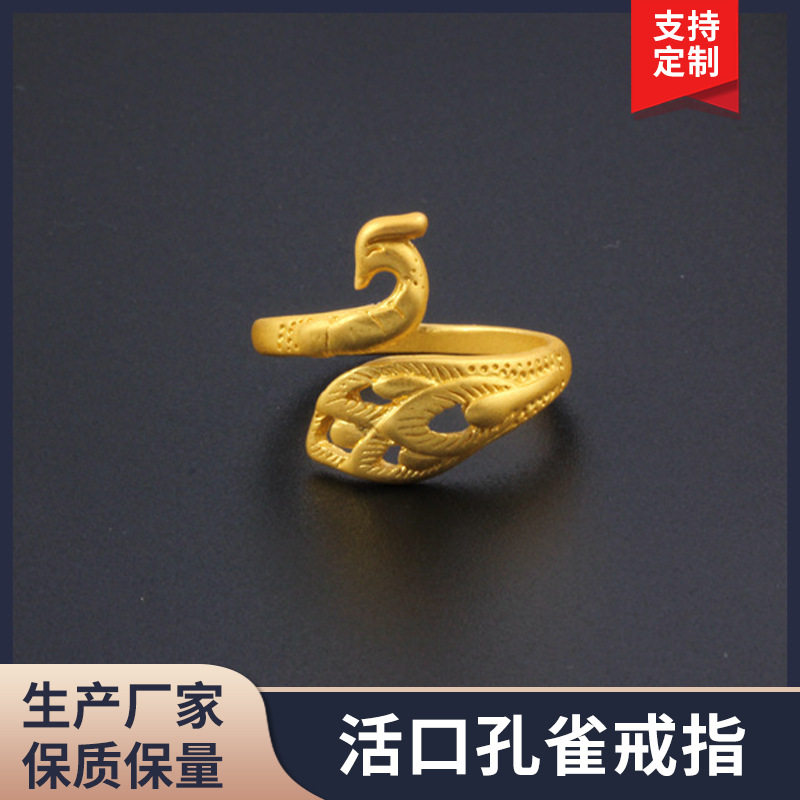 Simple retro three-dimensional Silver Peacock ring female open mouth distressed jewelry hook wool with thread artifact factory wholesale