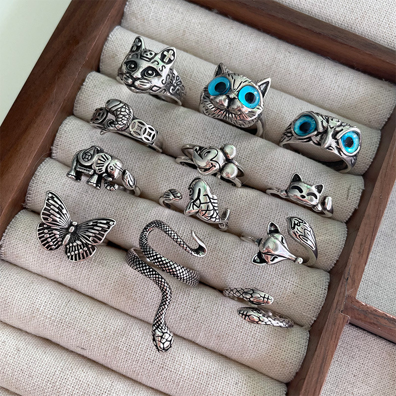 ZHIYUN Thai Silver Vintage Animal Jewelry Personalized Niche Cross-border Design Sense Finger Ring 925 Sterling Silver Ring for Women