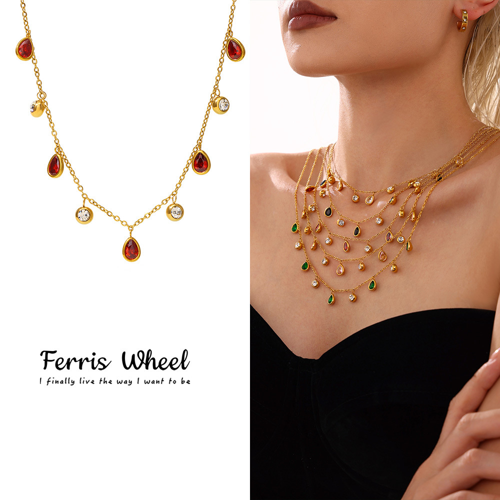 Ferris wheel water drop tassel magic rhinestone clavicle necklace European and American niche light luxury stainless steel 18k gold plated jewelry