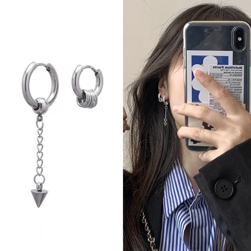 Asymmetric Ring Tapered Earrings Hip Hop Ear Ring Korean Titanium Steel Men's and Women's Ear Drop Cold Wind Ear Pin Trendy Ear Stud