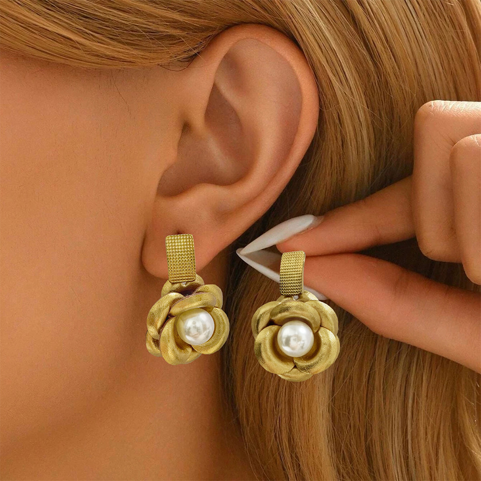 Suqi Korean Style Spring and Summer Leather Camellia Earrings French Niche Elegant Earrings Accessible Luxury High-End Earrings