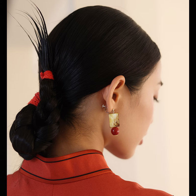 New Chinese Style Earrings, Smudged Classical Chinese Style, Suitable for Spring, Retro Earrings for Square and Round Faces, Yellow Artistic Earrings