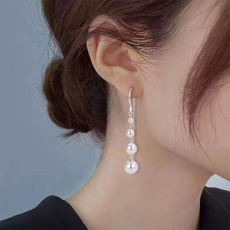 S999 Pure Silver Shell Beads Pure Silver Ear Wire Women's Elegant Long Earrings Versatile Classy Accessories Popular Silver Jewelry Women's