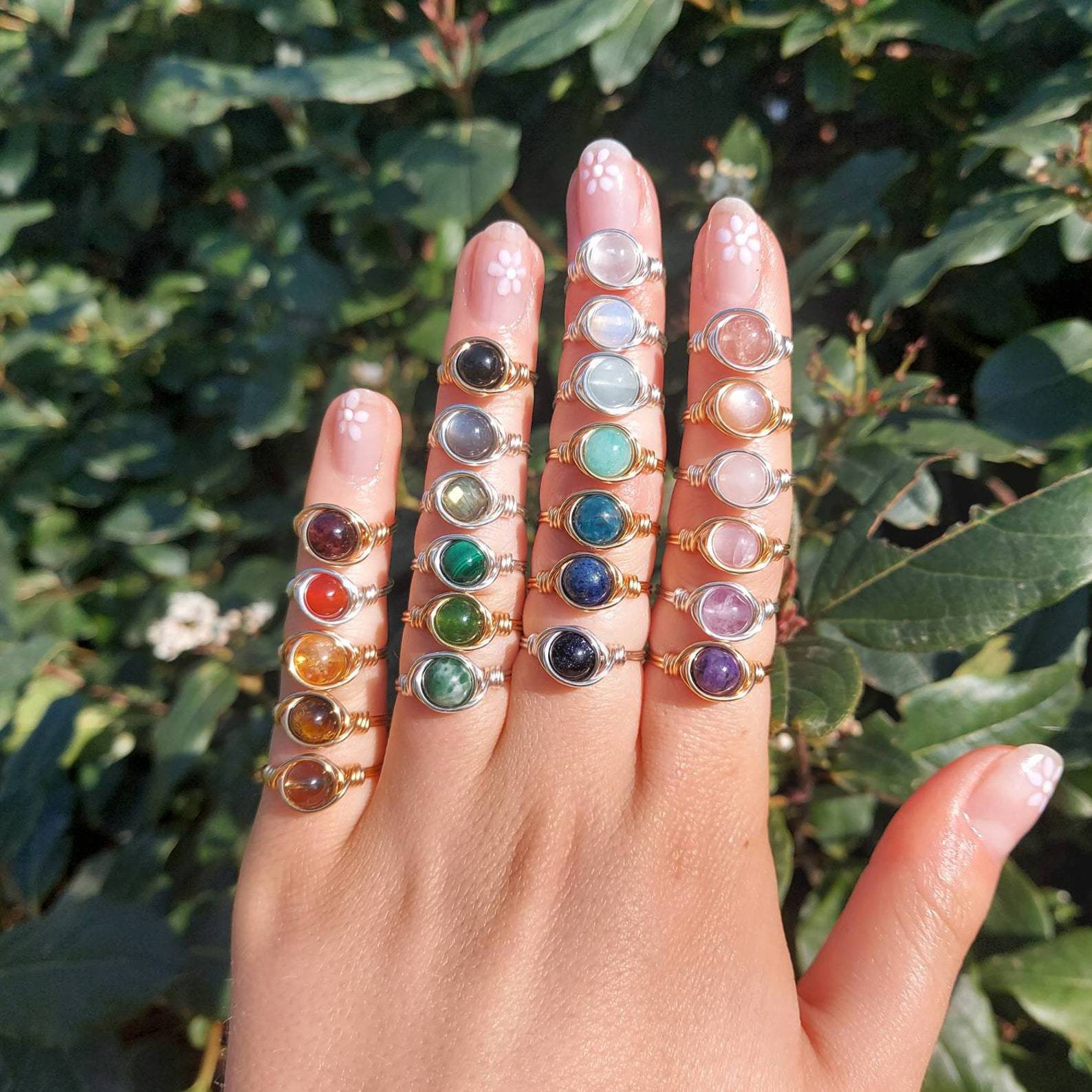 Hand-Woven Copper Wire-Wrapped Multi-Color Natural Stone Ring Fashion Ins Style Personalized Accessories Factory Direct Sales Wholesale