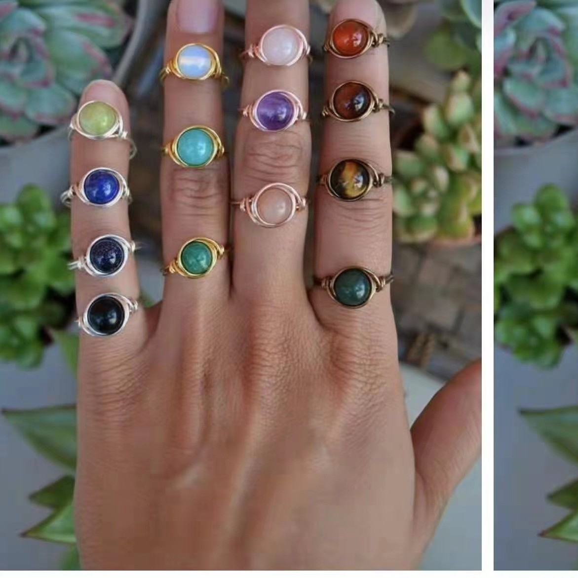 Cross-border hot selling jewelry crystal copper wire hand-woven natural stone ring personality INS female ring hipster bracelet