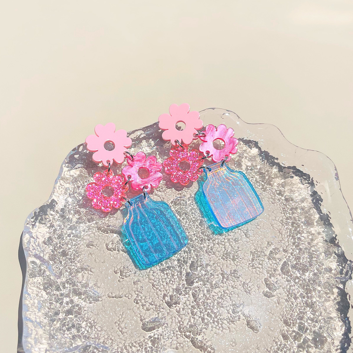 2022 new vase stitching creative colorful spring and summer flower acrylic stud earrings personality female handmade cute earrings