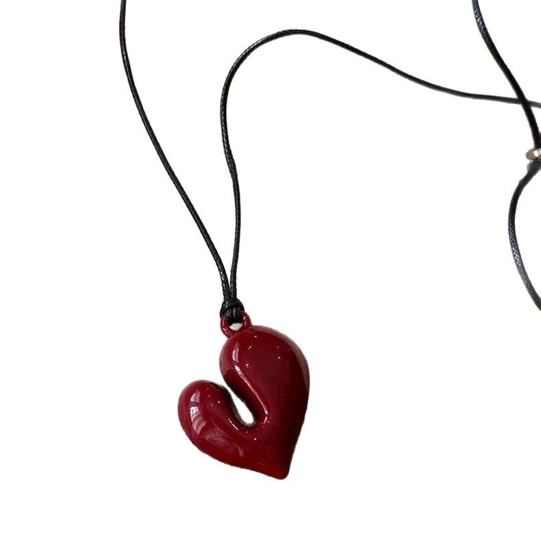 Cross-border Hot-selling Simple All-match Love Necklace Women's High-grade Black Rope Neck Wool Chain Drawstring Adjustable