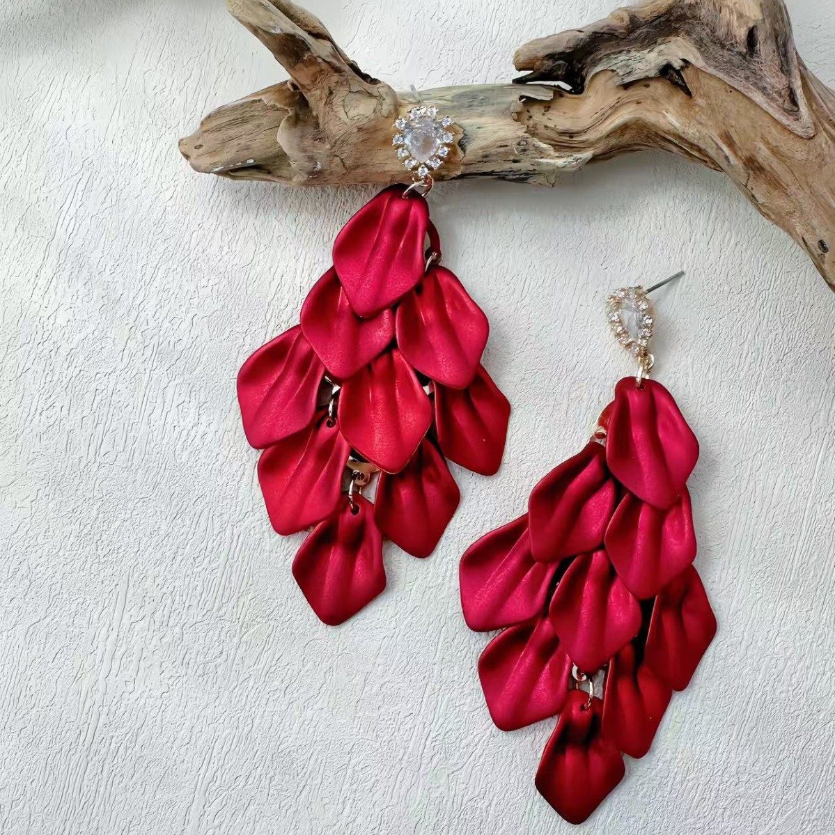 European and American Exaggerated Valentine's Day Rose Petal Hand-made Earrings Glass Diamond Earrings High-grade Light Luxury Suitable for Couples Gifts