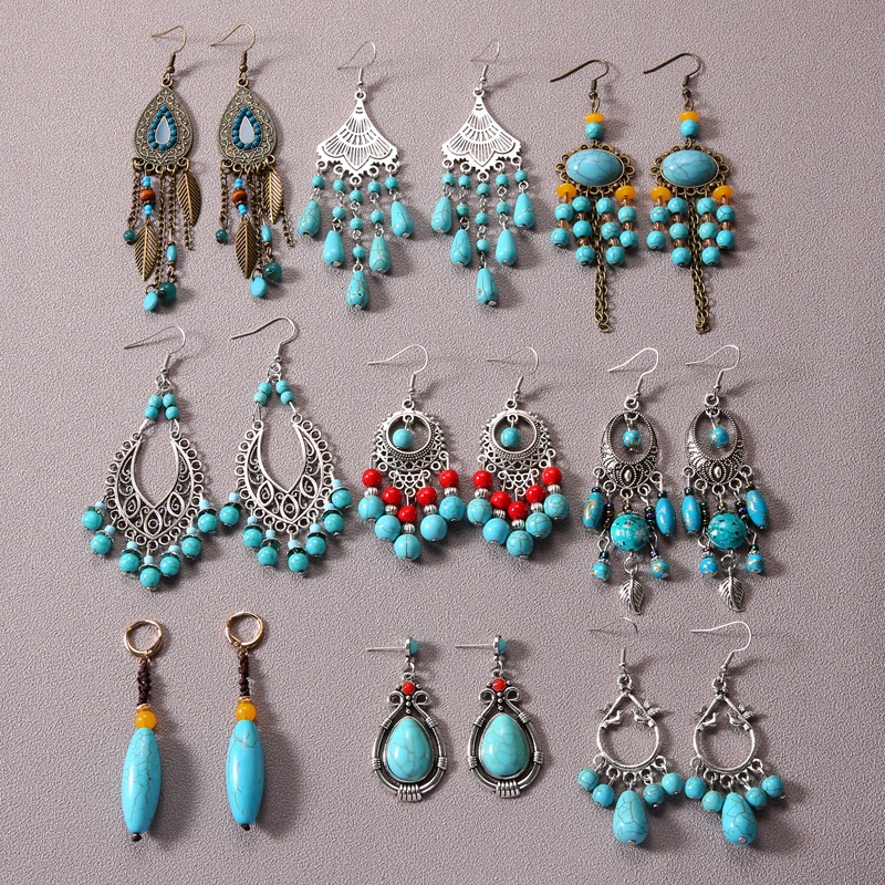 Bohemian Tassel Turquoise Antique Style Earrings Retro Ethnic Style Stylish Elegant Earrings Xizang Ear Jewelry