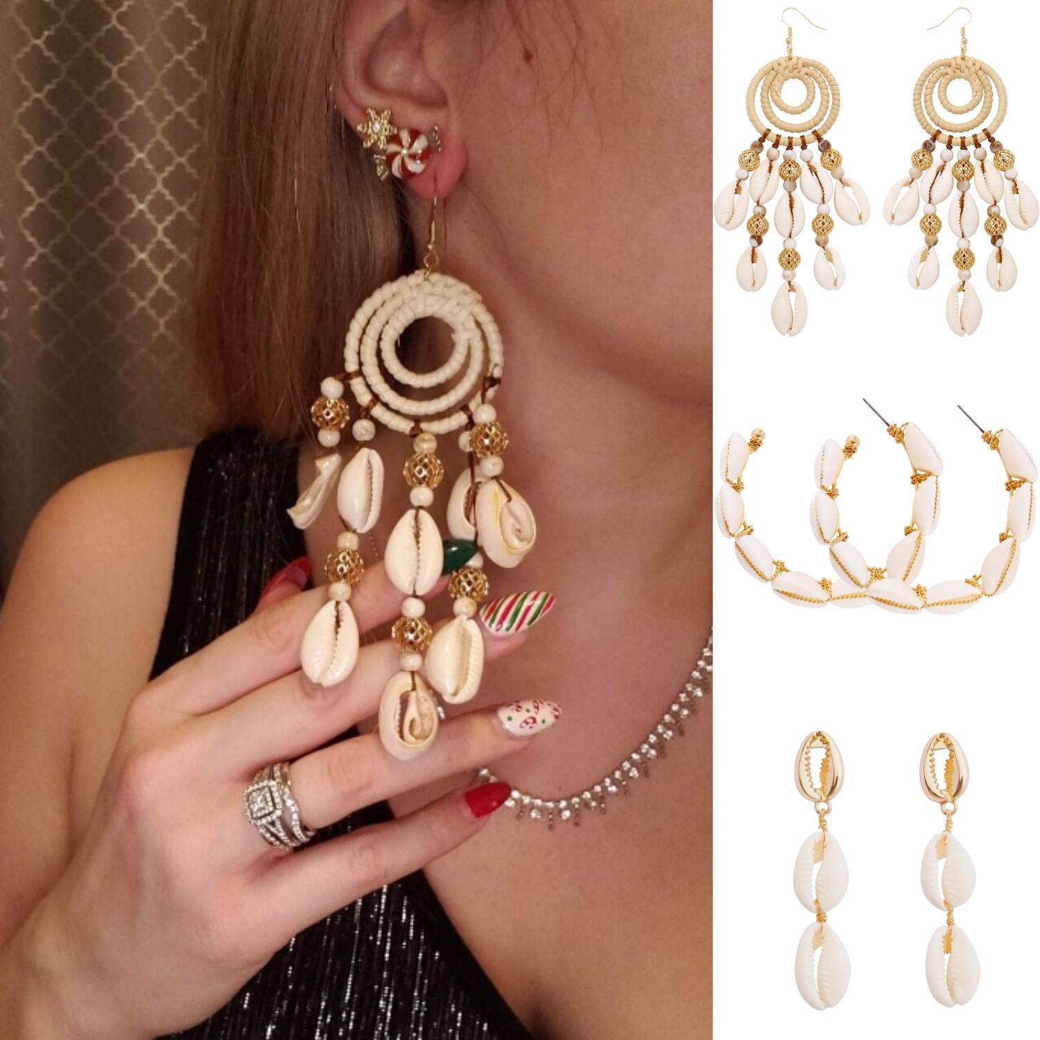 Amazon Cross-border Explosions Earrings Bohemian Beach Holiday Style Shell Beaded Pendant Earrings