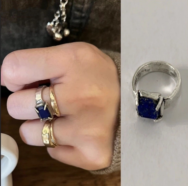 Korean Style Design Simple Classic Sapphire Texture Set Ring Fashionable Old Vintage Handmade Hammer Pattern Ring