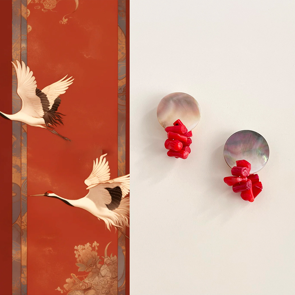 Red Sea Bamboo ~ National Trend Handmade Geometric Natural Abalone Earrings Accessible Luxury High-End Earrings Elegant National Style Earrings