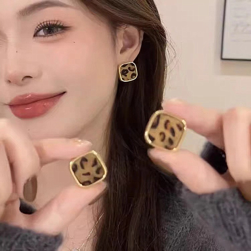 Hong Kong-style Leopard Square Earrings Women's Autumn and Winter Elegant Simple Fashion Commuter Earrings Niche Design New Earrings