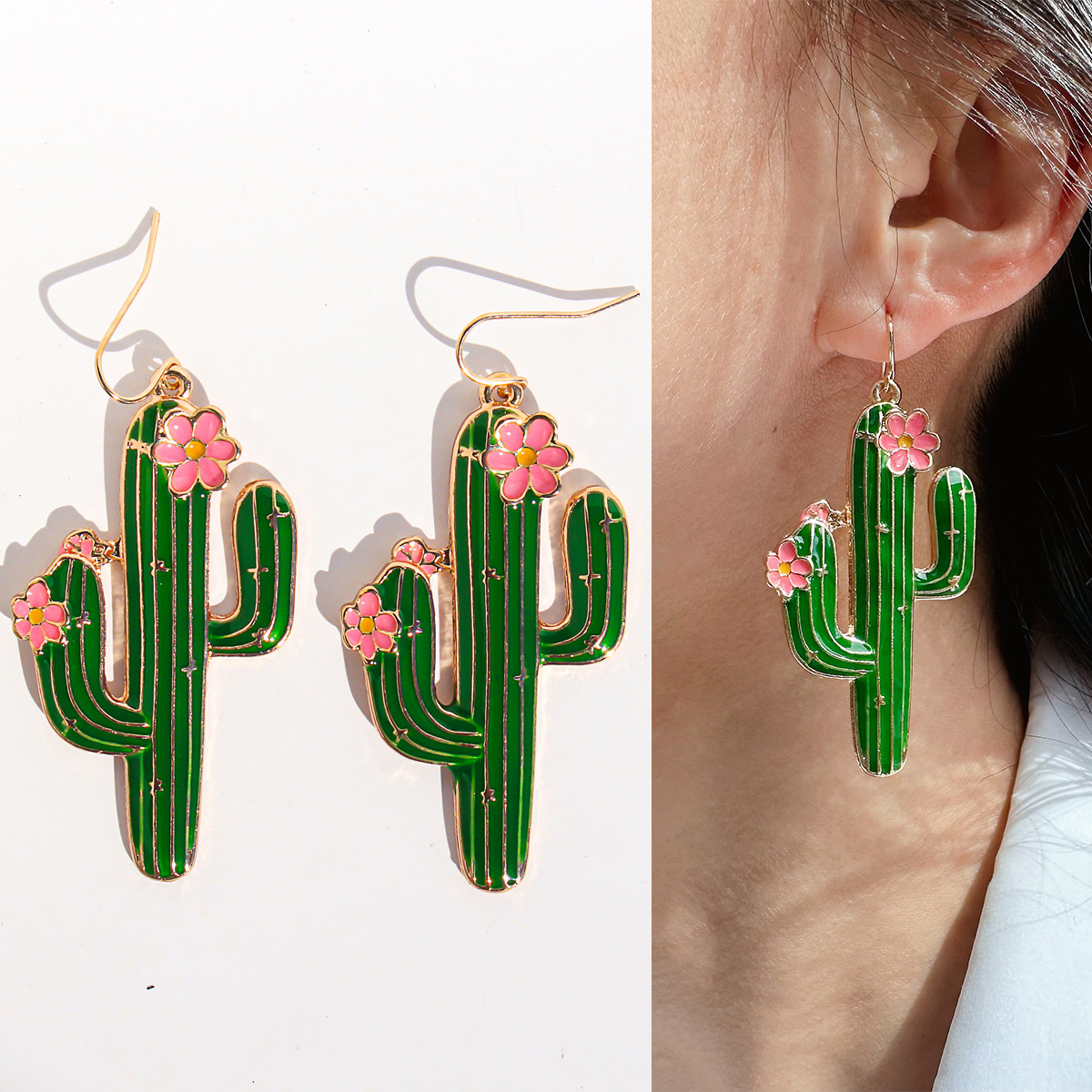Foreign Trade Jewelry European and American Niche Creative Cactus Earrings Women's Handmade Enamel Glaze Green Four-Leaf Clover Earrings V209