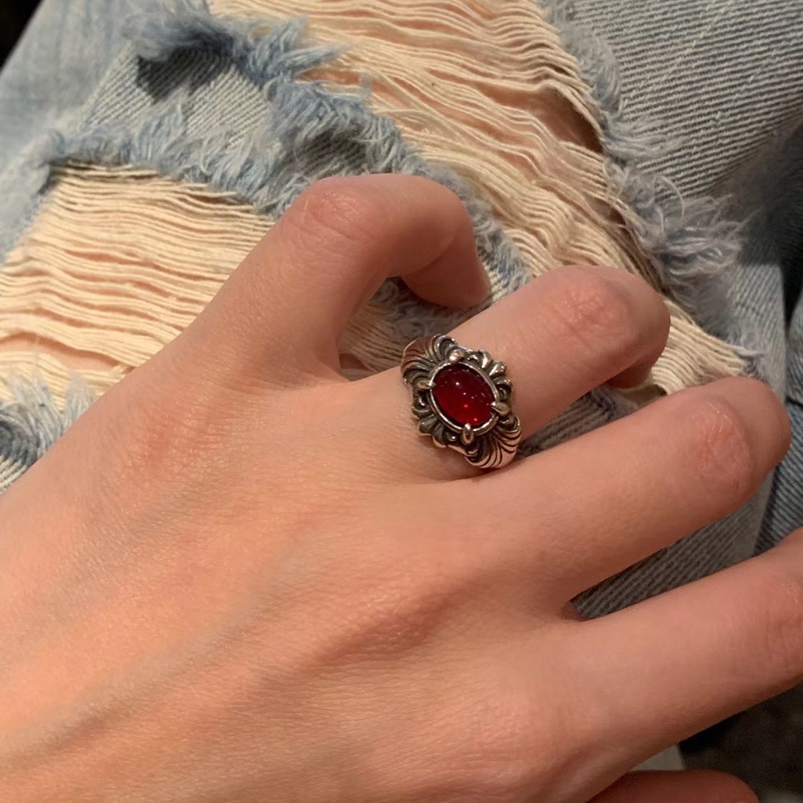 Homemade Stacked vintage Ring Niche Unique Antique Finger Ring Women's High-grade Finger Ring Adjustable Opening