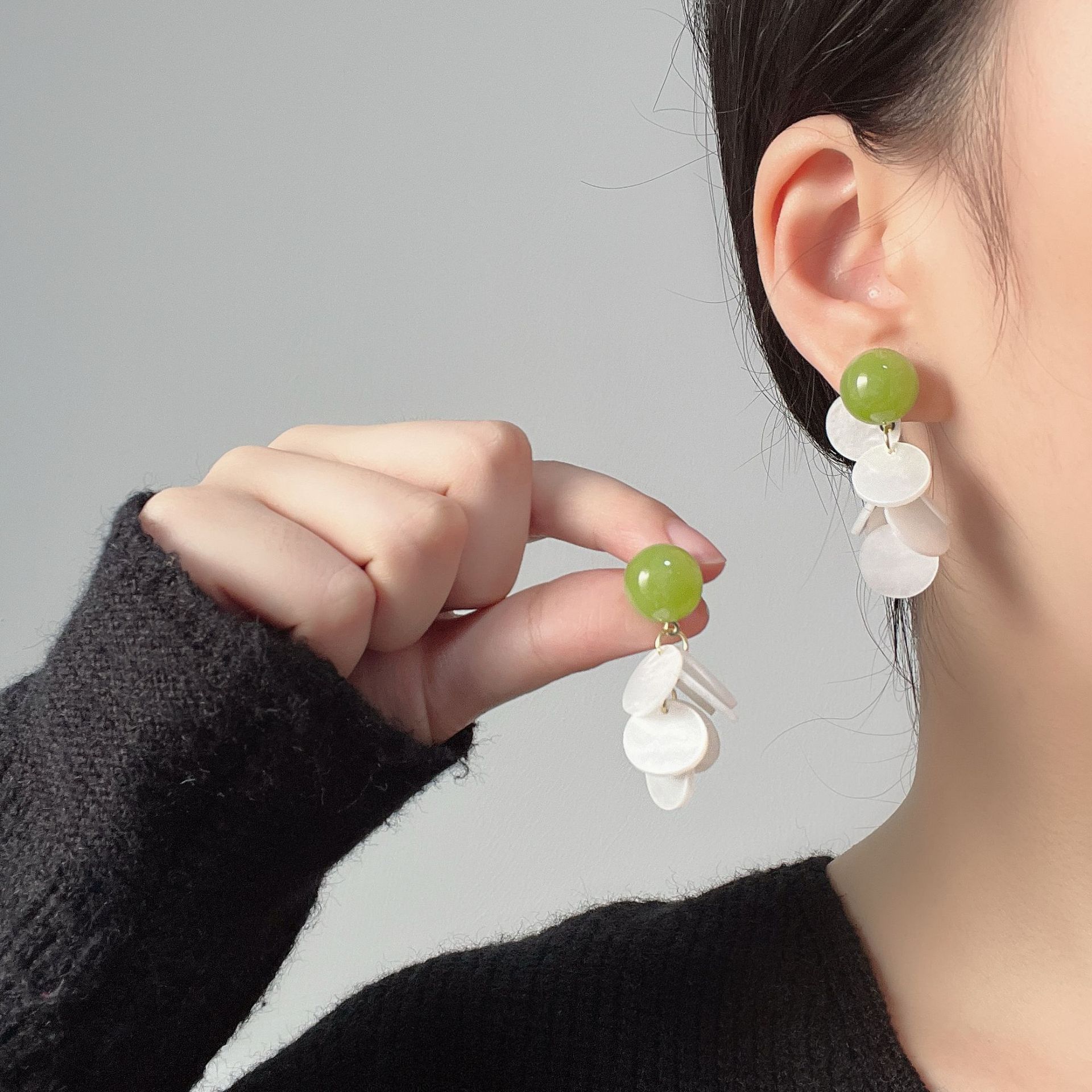 Green earrings wholesale summer new ~ Mori fresh natural shell 925 silver needle hand-made design earrings