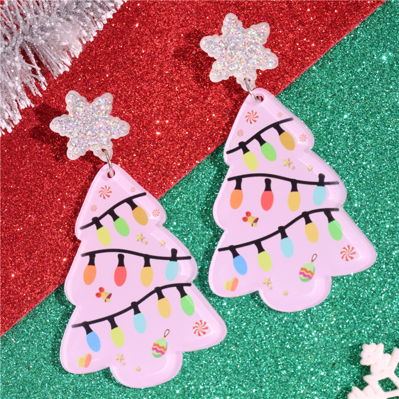 Christmas Snowflake Earrings Pink Christmas Tree Lantern Earrings Fashion Acrylic Print Christmas Holiday Earrings