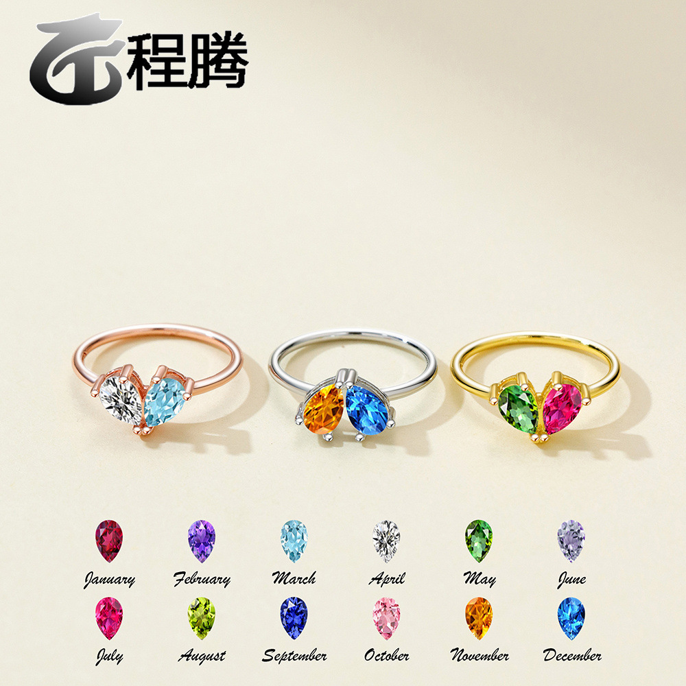 Amazon's Popular Double Water Drop Diamond Ring Can Be Diyed at Will. Personalized and Versatile Ring with Birthstone in December