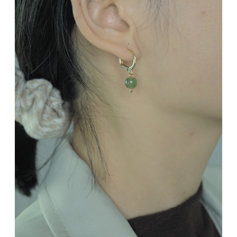 Ye Yuan Hand-made Hetian Jade Round Ear Buckle Elegant Simple Japanese and Korean Earrings Earrings All-match Fresh 01222