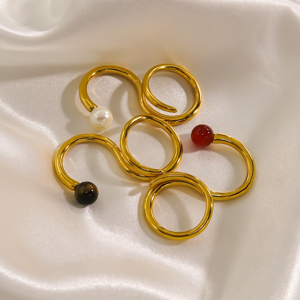 Minimalist personalized double finger stainless steel ring in the furnace 14K gold inlaid agate bead line Women's Open ring