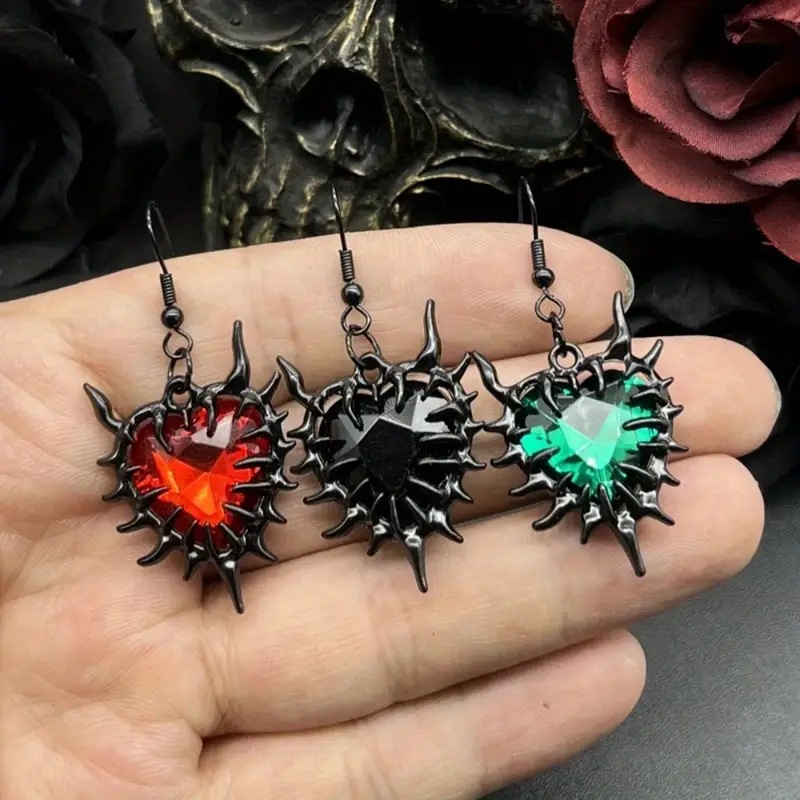 Cross-Border New Thorn Heart Earrings DIY European and American Stylish Dark Gothic Trendy Jewelry Wholesale