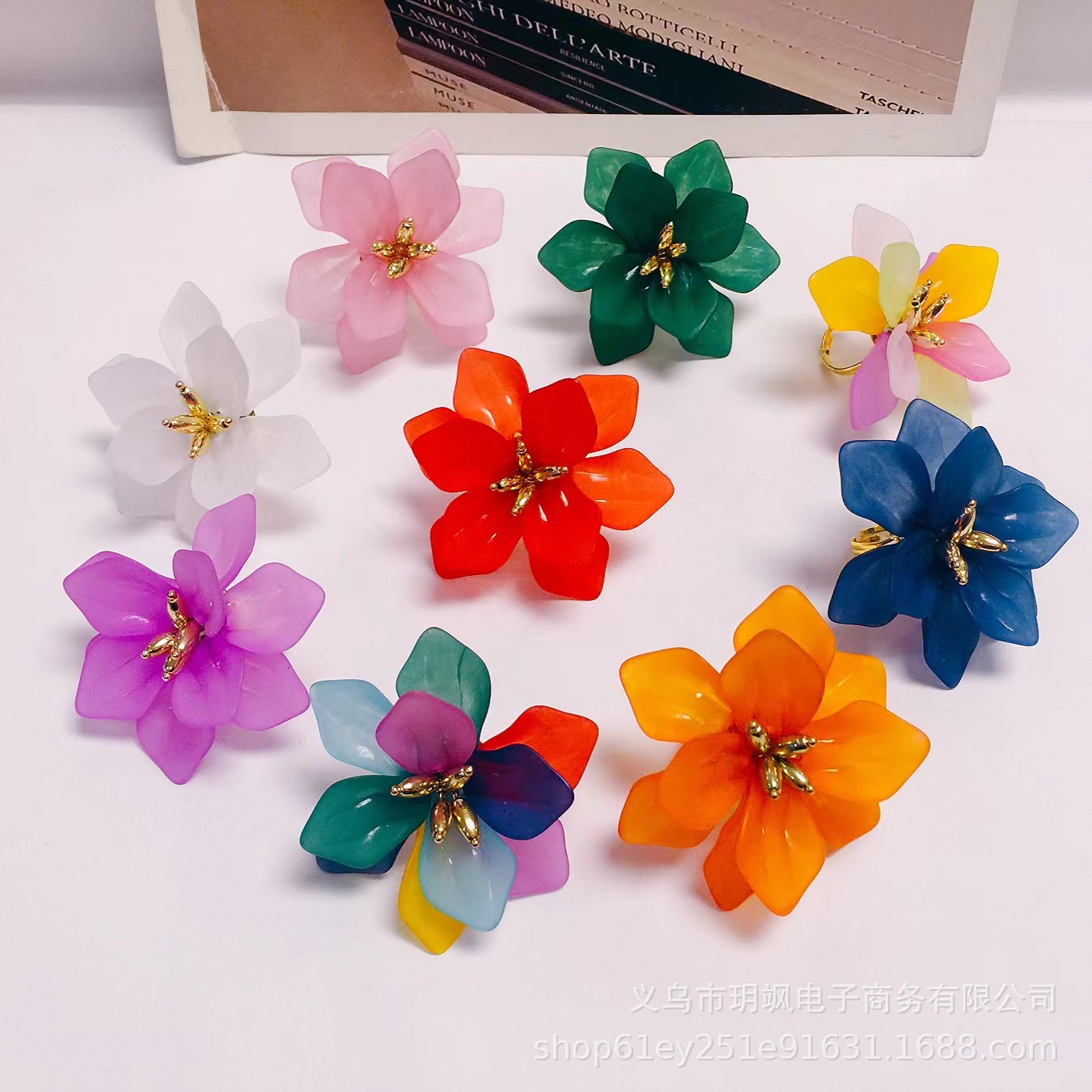 Ring New Exaggerated Dopamine Flower Acrylic Ring Lotus Shape Retro Fashion European and American Open Finger Ring