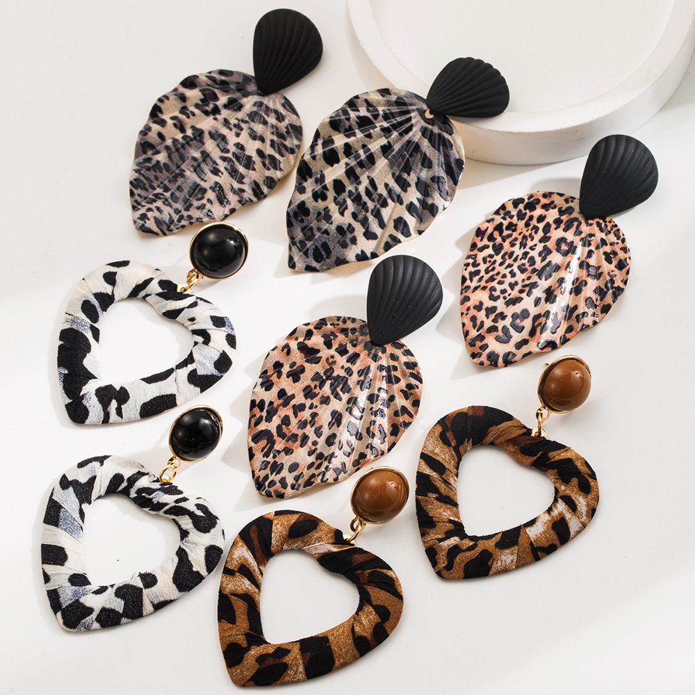 European and American Cold Style Simple Atmospheric Earrings Leopard Print Leaves Love Personality Exaggerated Earrings Elegant Retro Earrings for Women