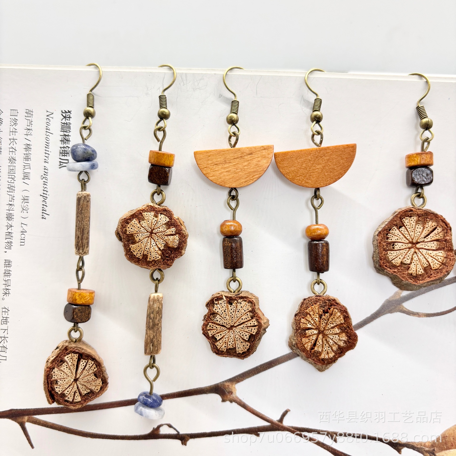 Factory Direct Sale Handmade Ethnic-Style Earrings with Dried Flowers, Plants, Acorns, Blood Vine, Artistic Ethnic Personality Tassel Earrings