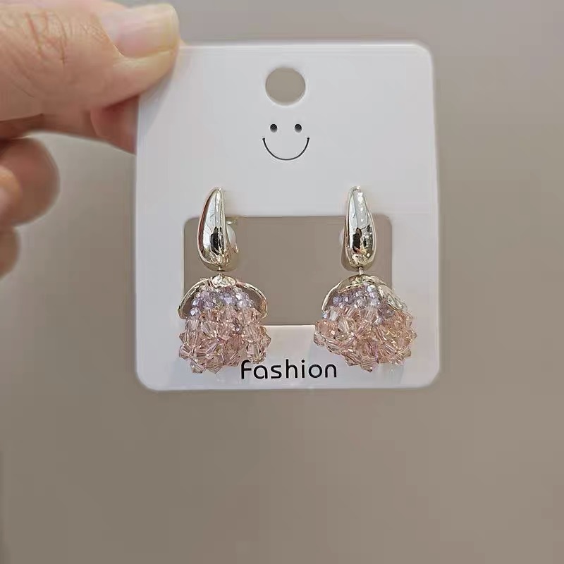 Huaqiao Jewelry Hand-Woven Tulip Earrings Craft Crystal Flower Silver Needle Earrings High-End Accessories