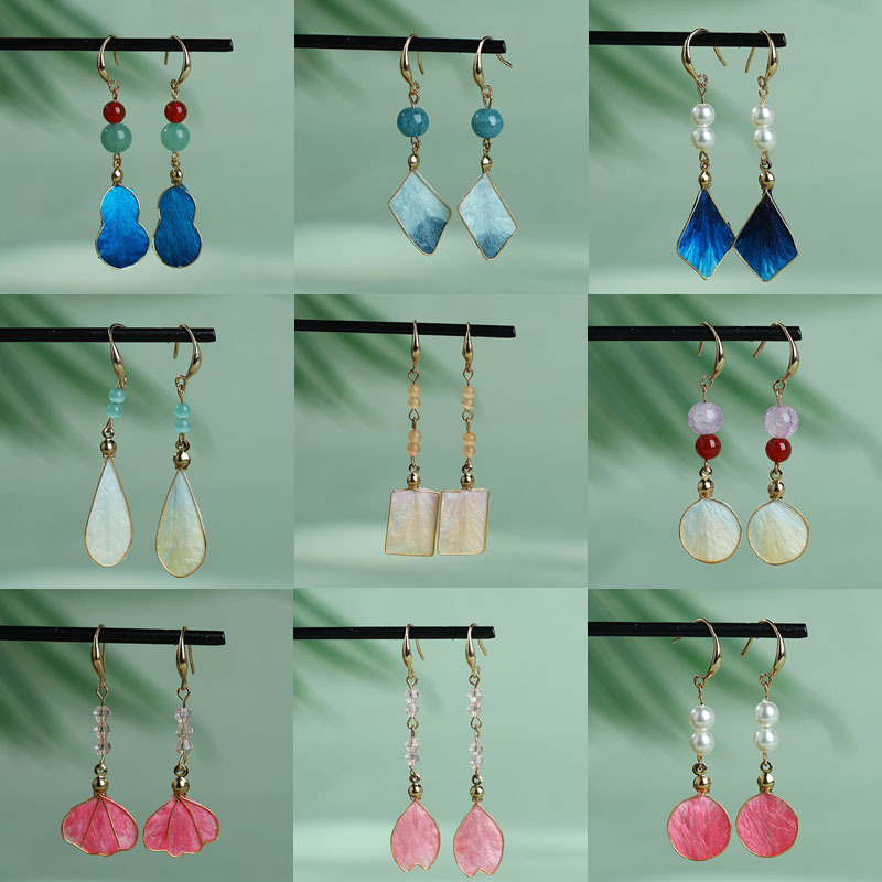New Chinese Fleece Flower Earrings Butterfly New Chinese Earrings Women's High-end National Style Earrings Hairpin Flower Antique Cheongsam Accessories