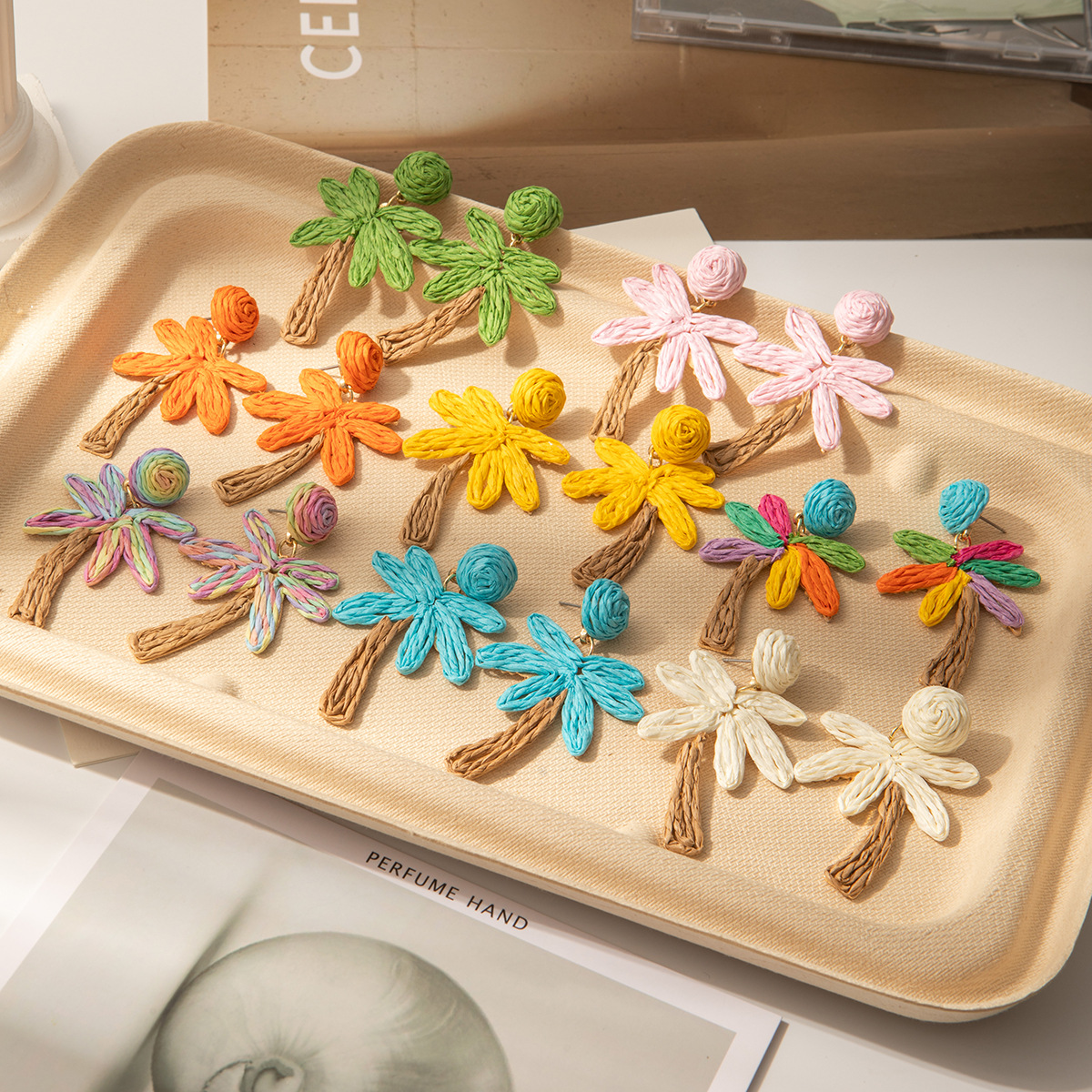 European and American Woven Flower Holiday Style Earrings New Summer Seaside Dopamine Design Niche Accessible Luxury Earrings for Women