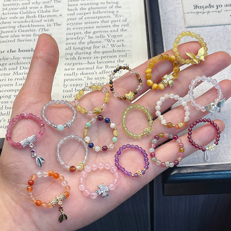 Natural Crystal Tourmaline Ring, Pearl Plain Ring, Niche High-End Handmade Ring, Gemstone Jewelry Ring Wholesale