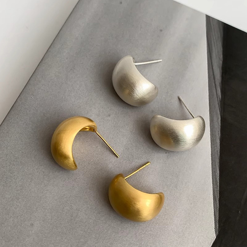 S925 Silver Needle Sweet Cool Metal Matte Frosted Brushed Texture Cold Style High-End Bean Earrings Water Drop Earrings