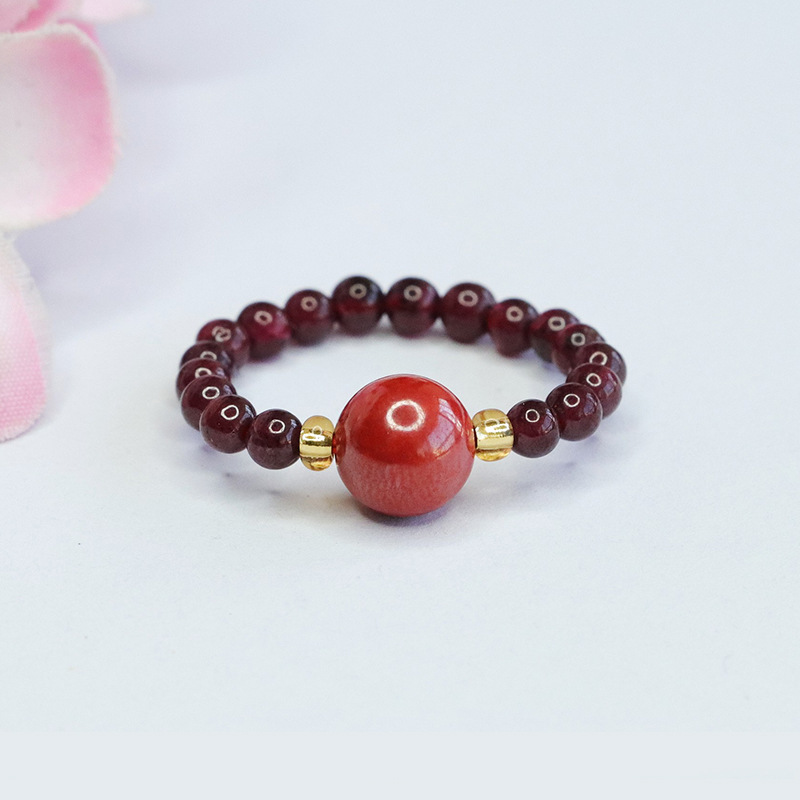Guan Yu Cinnabar Ring Imperial Sand Round Bead Ring Garnet Finger Ring Women's Factory Wholesale Dropshipping S4011102