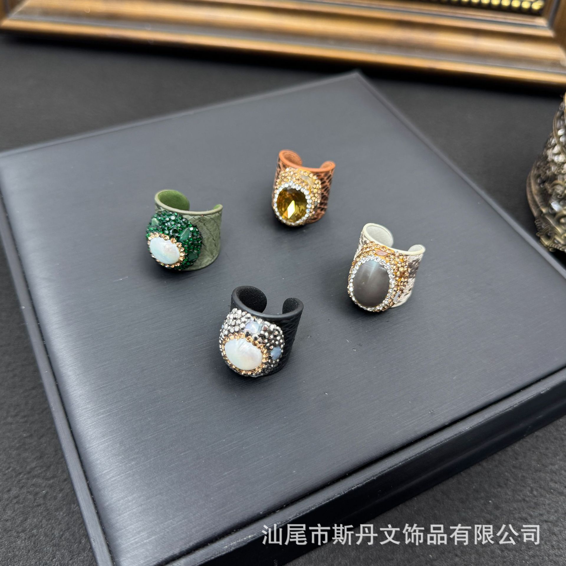New Natural Baroque Pearl Shell Genuine Leather Ring, Personalized Light Luxury Niche Handmade Inlaid Sudanese Stone Ring