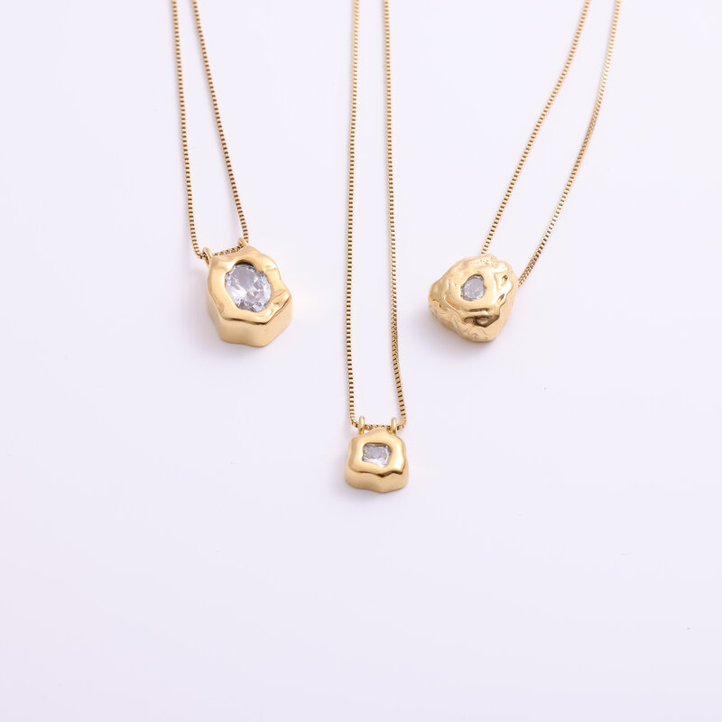 Special-Shaped Gold Nugget Necklace Inlaid with Zircon Titanium Steel Electroplated 18K Gold