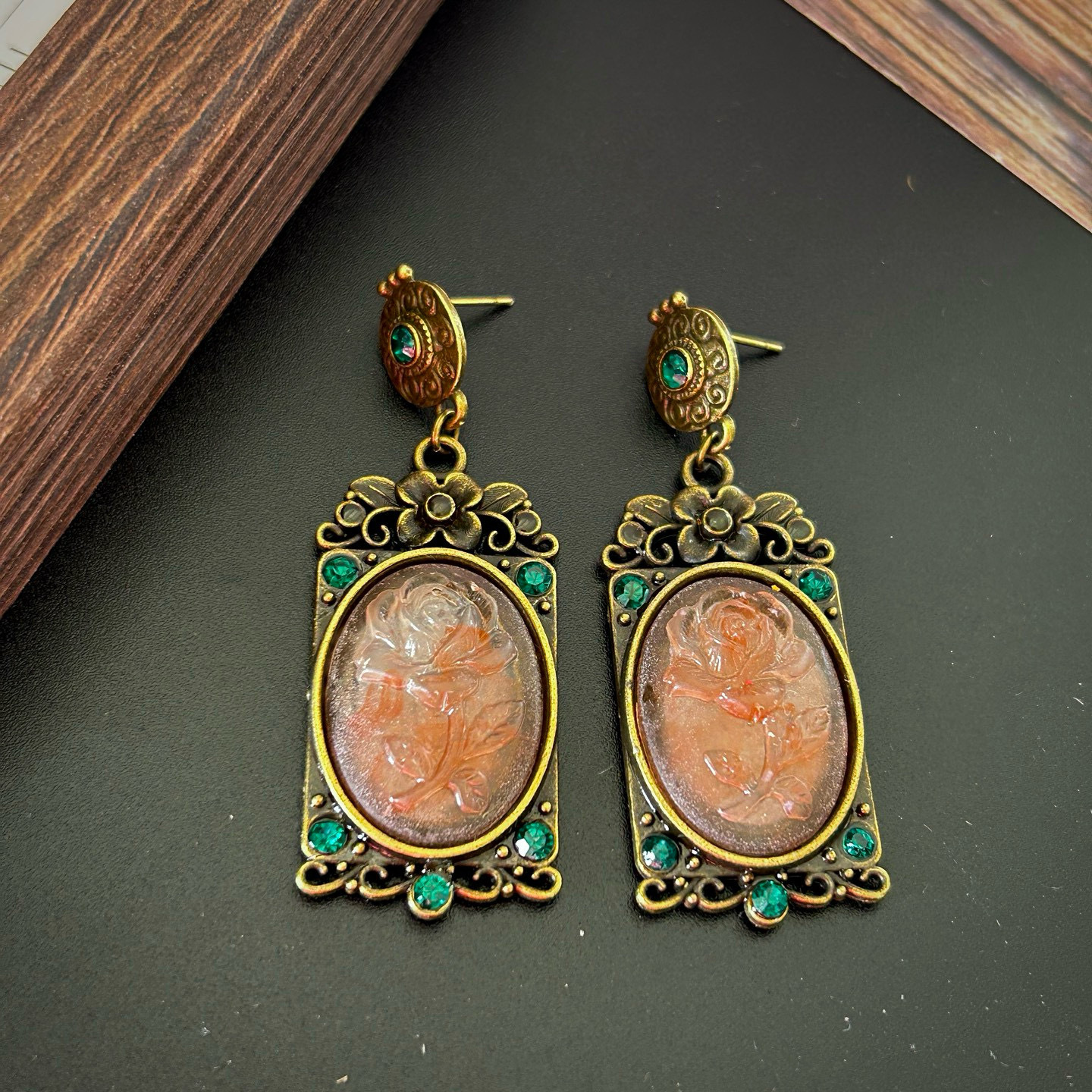 Middle Ancient vintage Western Retro Court Style Antique Jewelry High-grade Jelly Glaze Rose Brand Earrings