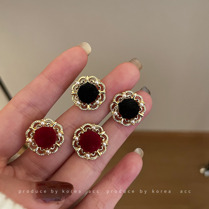 925 silver needle fabric pearl flower earrings autumn and winter French artistic earrings simple niche design earrings for women