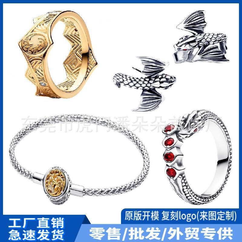 Panjia Halloween new white copper silver-plated ring ring ring pair ring ear studs earrings high-grade beaded bracelet diy