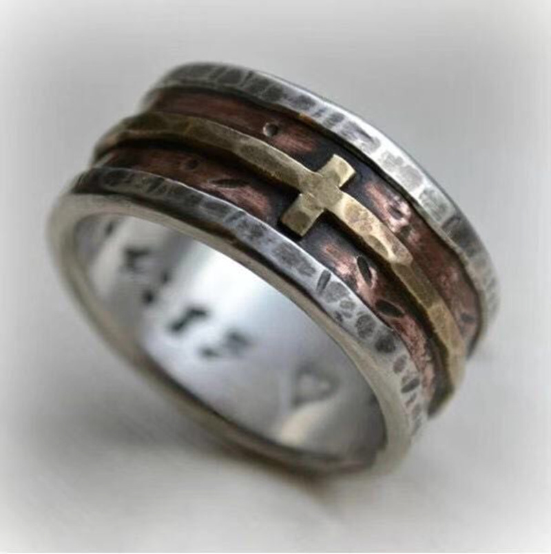 wish Cross-border Hot Sale New 3 Color Cross Trendy Men's Ring Retro Original Personalized Gift Jewelry Ring