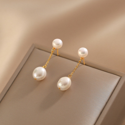 Natural freshwater pearl earrings women's tassel long niche light luxury high-grade earrings simple all-match temperament earrings