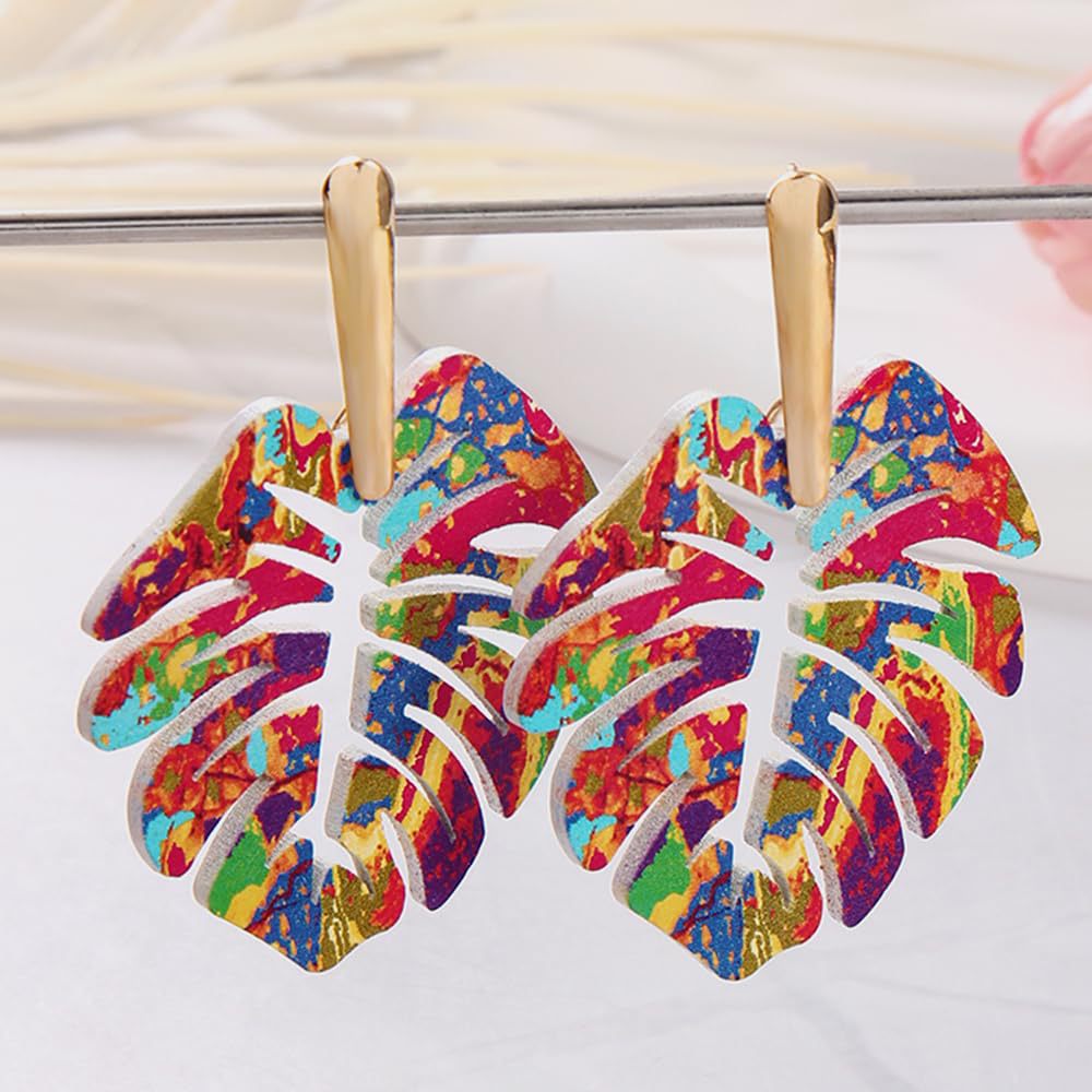 European and American Cross-Border Bohemian Ethnic Style Earrings Monstera Leaf Decoration Holiday Amazon New Earrings