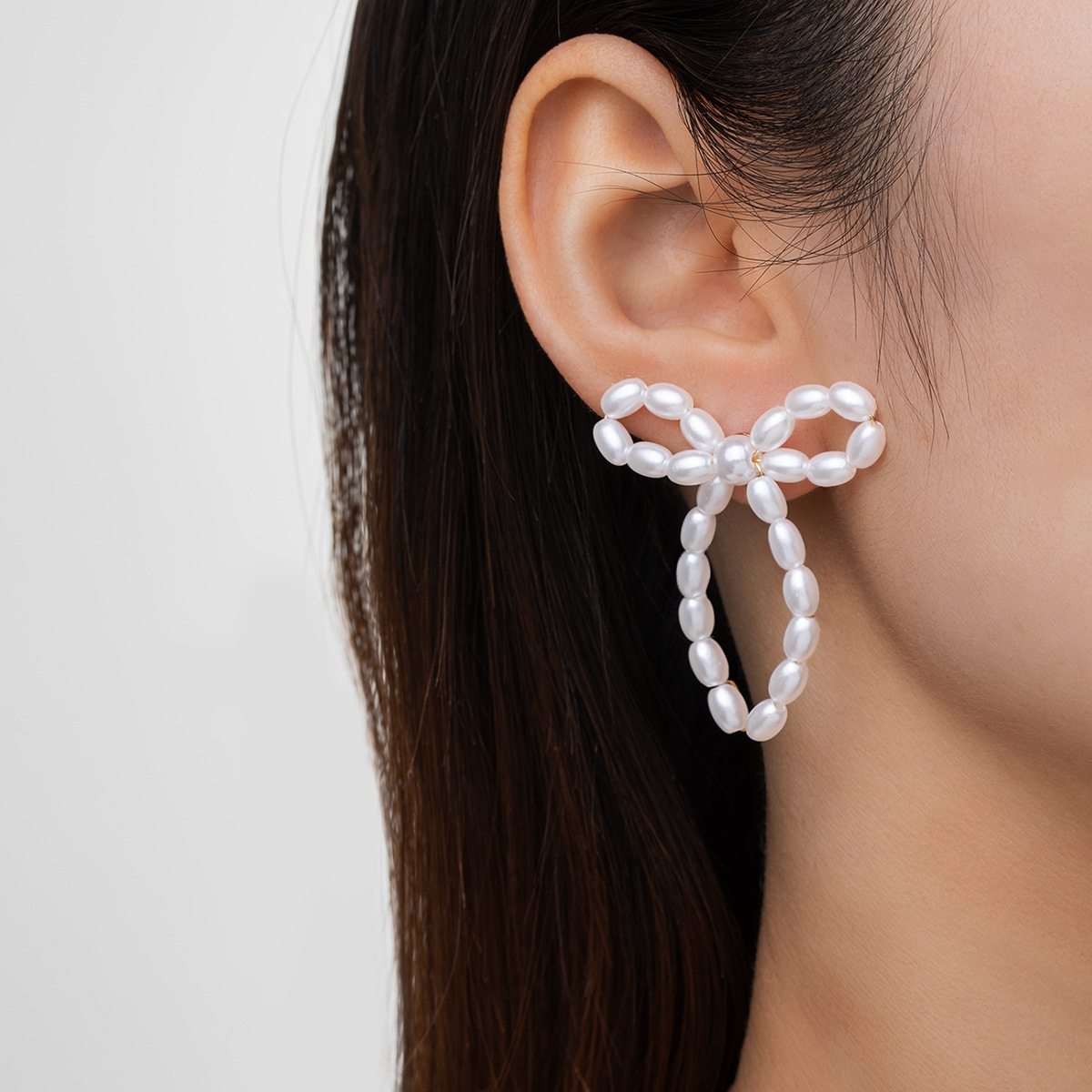 Korean Fashion Elegant High-End Niche Versatile Commuting Bow Imitation Pearl Beaded Women's Earrings
