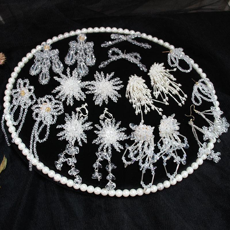 Transparent Crystal Waterfall Handmade Beaded Earrings Exaggerated Distinctive Earrings Niche Holiday Ins Ear Clip Ear Accessories
